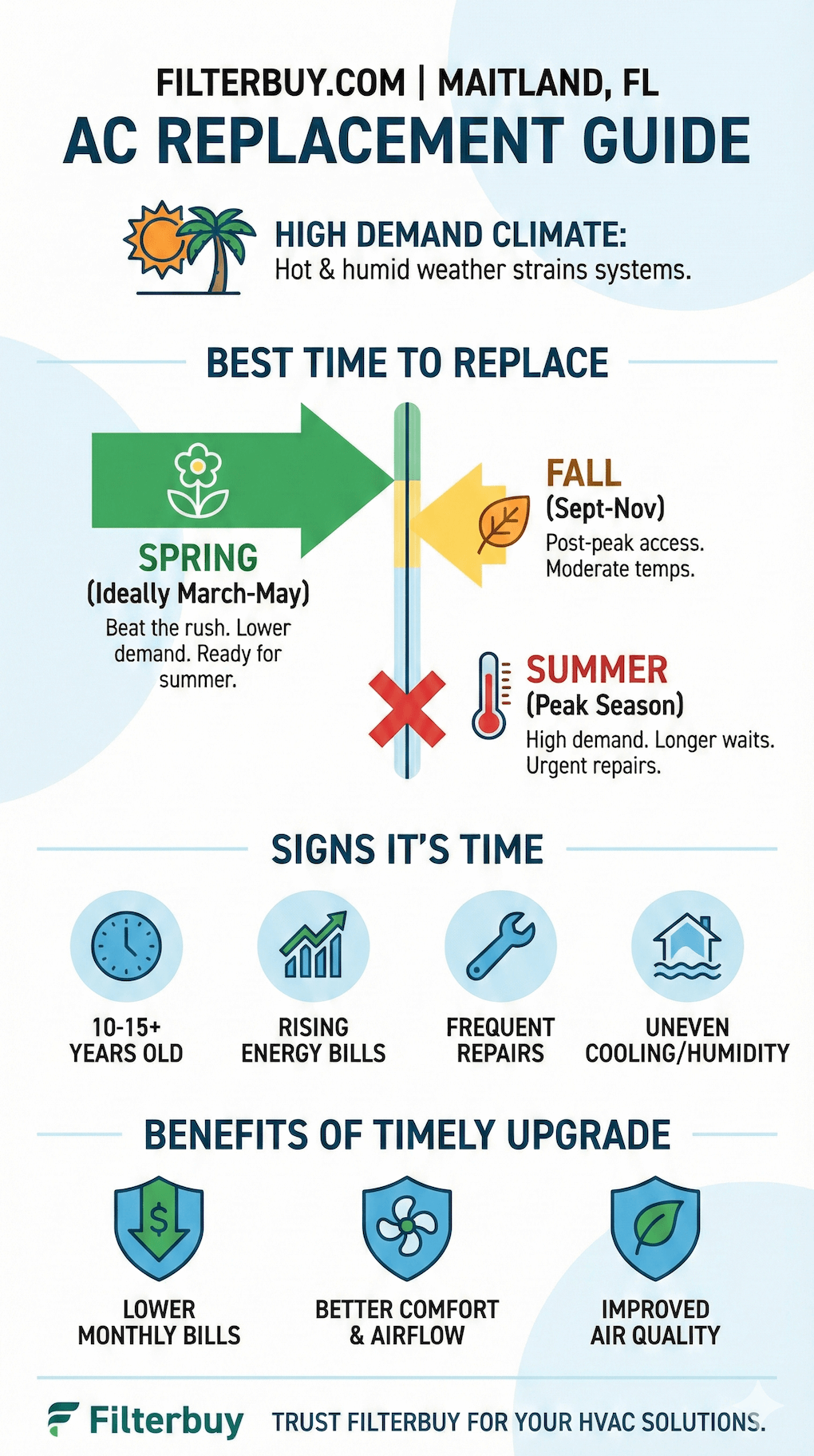 Bottom line: The data backs up what we see every cooling season—timing your AC replacement early protects comfort, controls energy costs, and helps your system perform better when Maitland heat is at its worst.